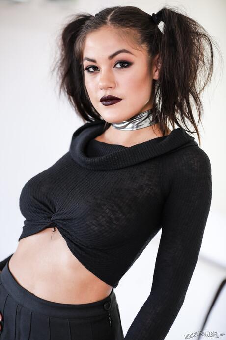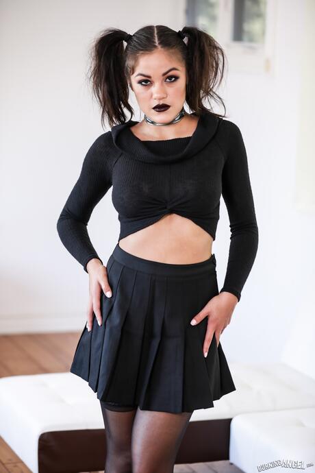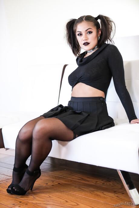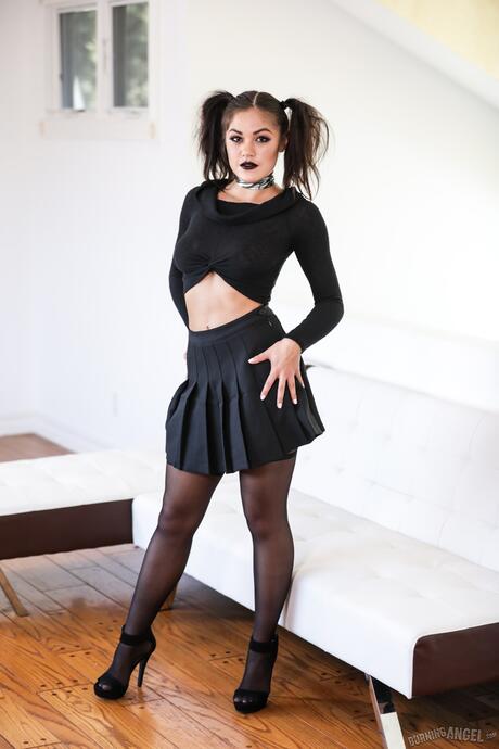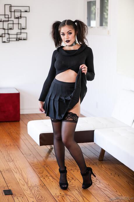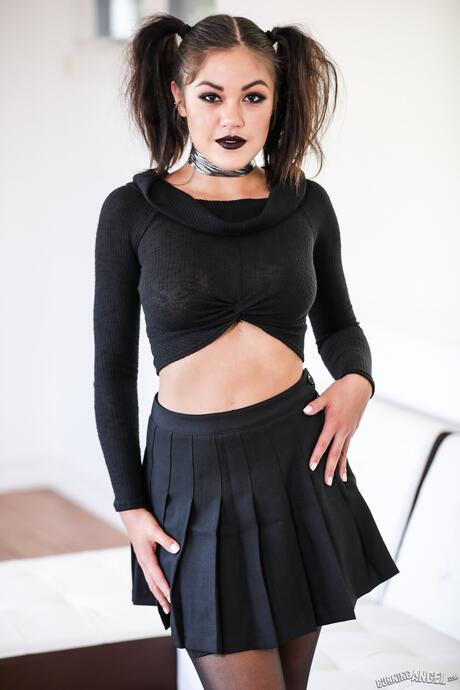 Adult Time: Goth teen Kendra Spade strips to her pantyhose and shows her hot ass