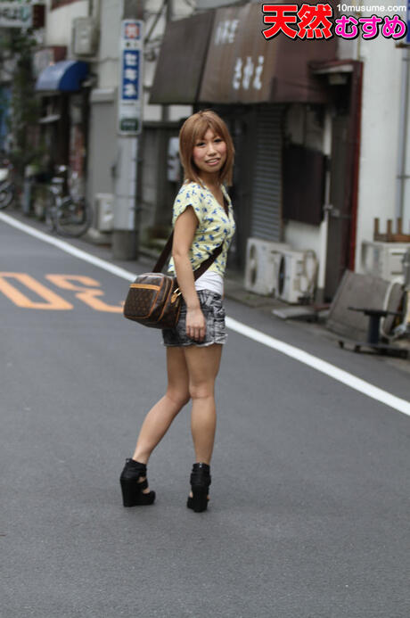 10musume: Horny Japanese babe Matsura Saki strips and toys her hairy pussy in a solo