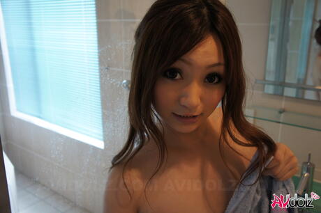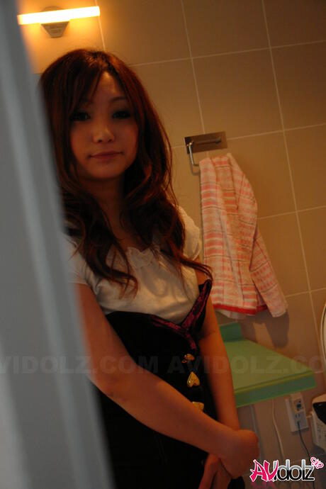 AV Idolz: Hot Asian babe Rui Yazawa strips and toys her pussy in the bathroom