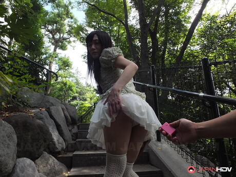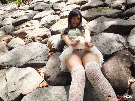 Japan HDV: Hot Asian maid Tsukushi strips and toys her horny pussy in the garden