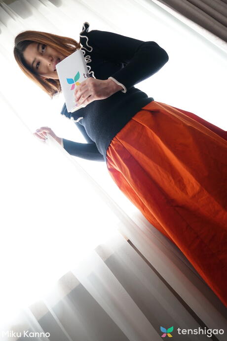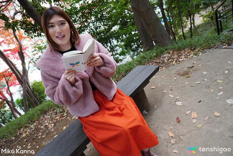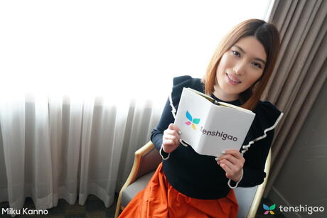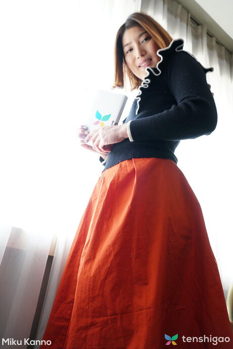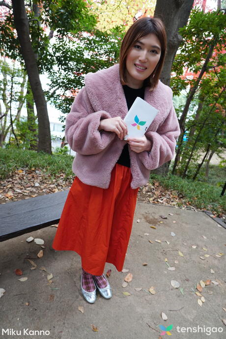 Tenshigao: Hot Asian Miku Kanno strips off her red dress and fingers herself