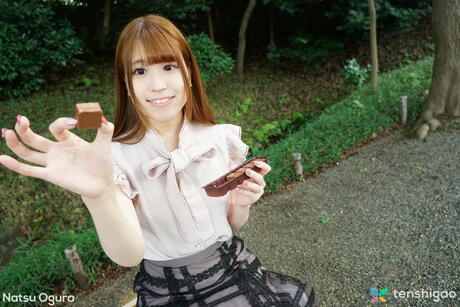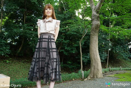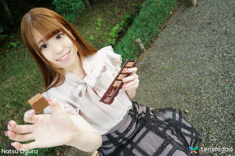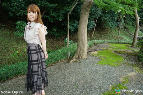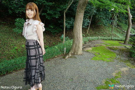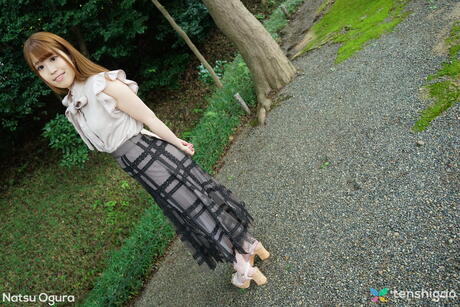 Tenshigao: Hot Asian Natsu Ogura strips to her heels and shows her hairy cunt