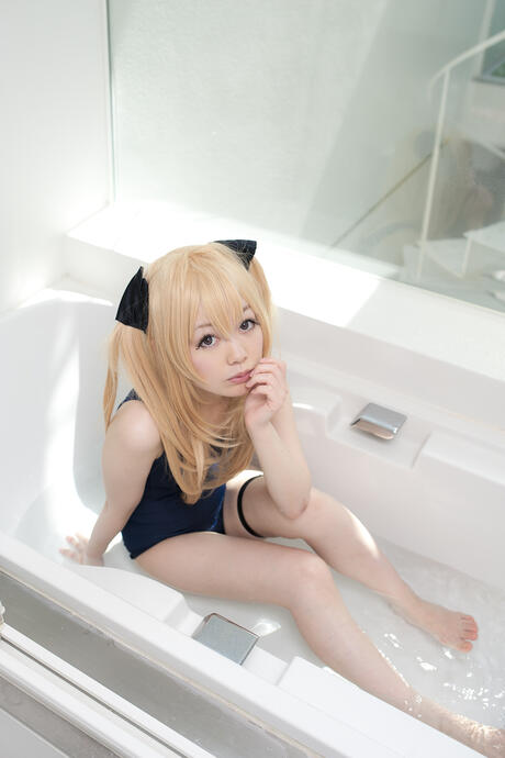 All Gravure: Hot blonde Tsuredure Shasin doffs a black dress to pose nude in a pool