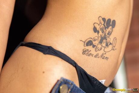 Creampie Thais: Hot brunette Nalin doffs her denim shorts and displays her sexy butt