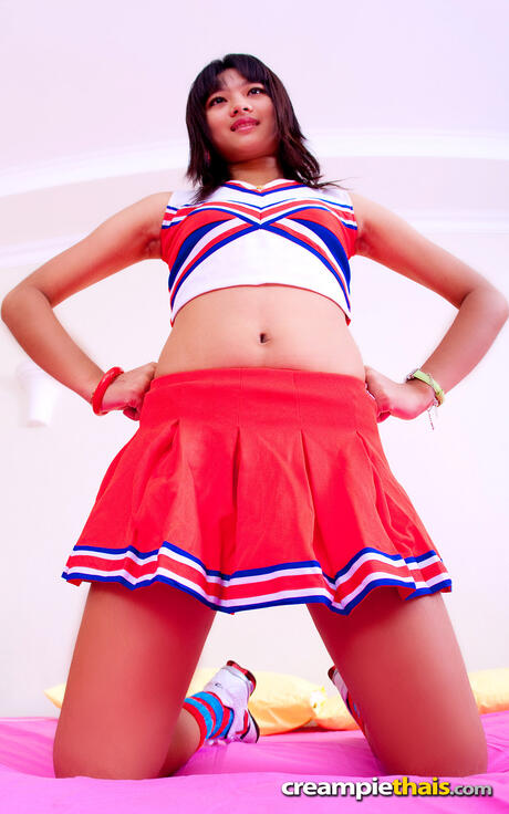 Creampie Thais: Hot cheerleader Powder strips off and unveils her big ass and pierced pussy