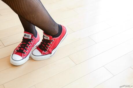 Adult Time: Hot Filipina Annie Cruz strips to her fishnets & masturbates in a solo
