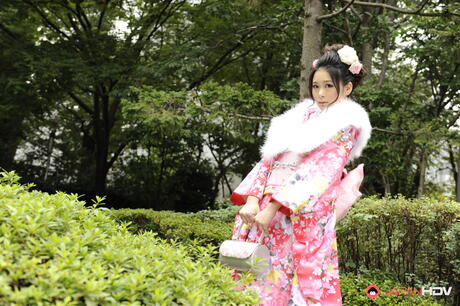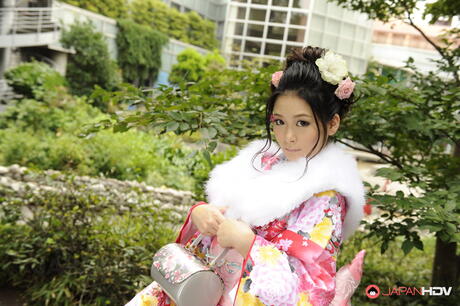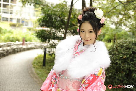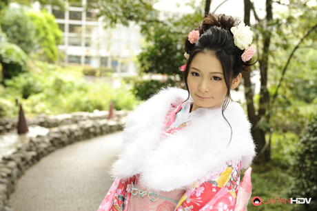 Japan HDV: Hot Japanese babe Ako Nishino undresses and displays her perfect ass outdoors