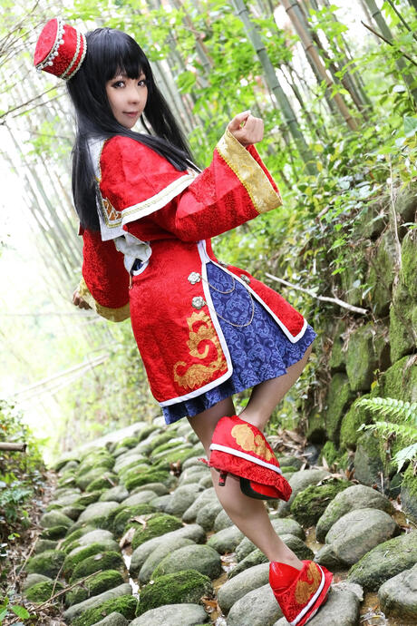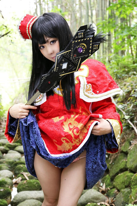 All Gravure: Hot Japanese babe Higurashi Rin strips her red dress and poses in the forest
