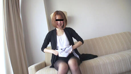 10musume: Hot Japanese babe Hitomi Moriyama strips and rides a dildo on a bed