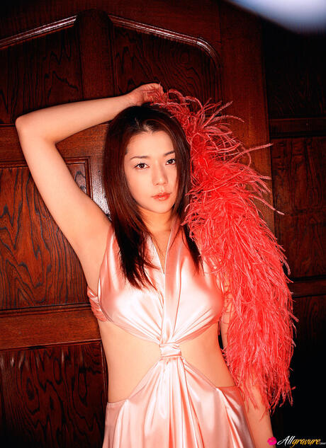 All Gravure: Hot Japanese babe Miho Yoshioka strips her red dress and poses in fishnets