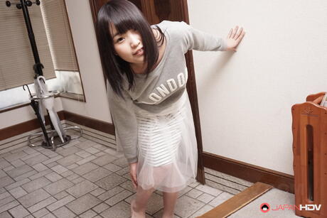 Japan HDV: Hot Japanese babe Riku Nekota strips and fingers wet pussy on the bed