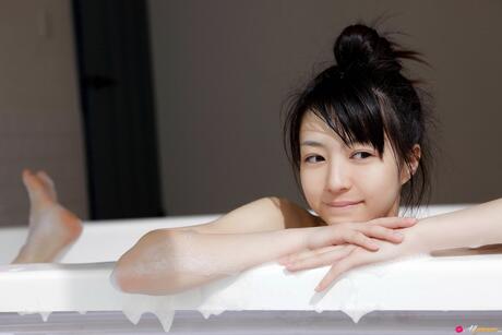 All Gravure: Hot Japanese babe Rina Aizawa strips and reveals her naked form in a bathtub