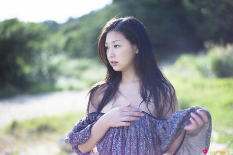 All Gravure: Hot Japanese babe Sayama Ayaka reveals her hot butt in a purple bikini