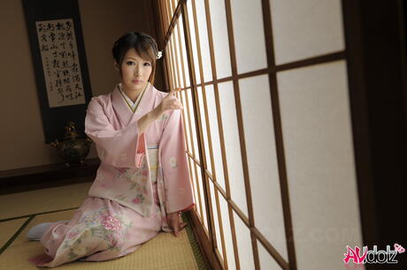 AV Idolz: Hot Japanese girl Keiko Shinohara strips off her kimono and panties to masturbate