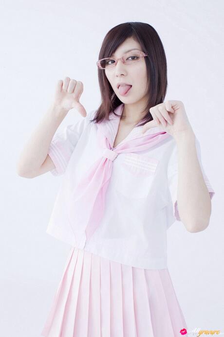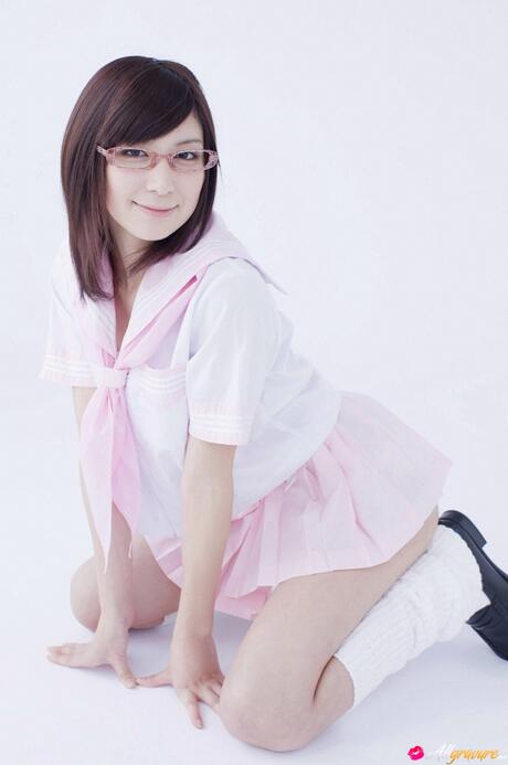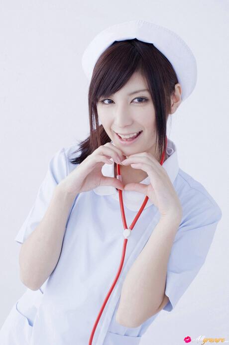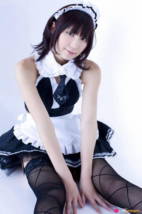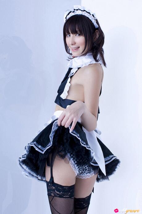 All Gravure: Hot maid Miu Nakamura strips to her fishnet stockings & shows her hot ass
