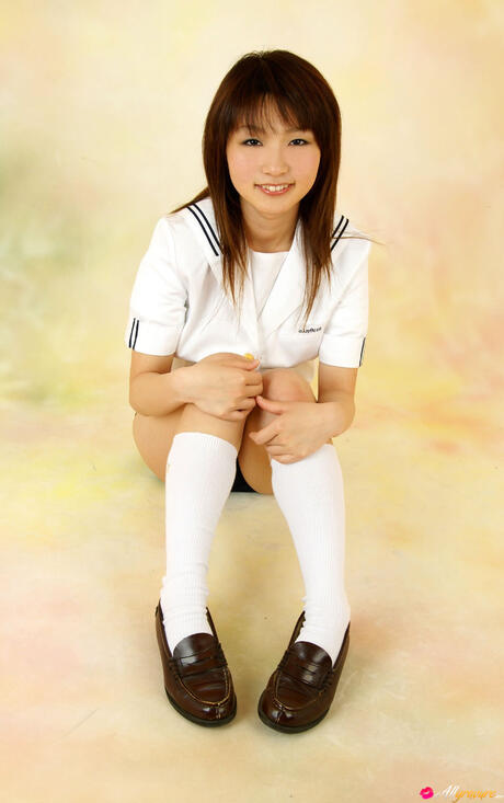 All Gravure: Hot schoolgirl Miyu strips her uniform and shows her perfect booty and tits