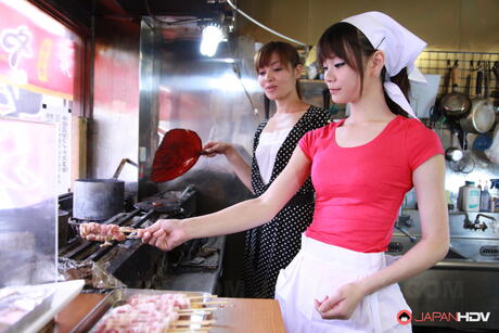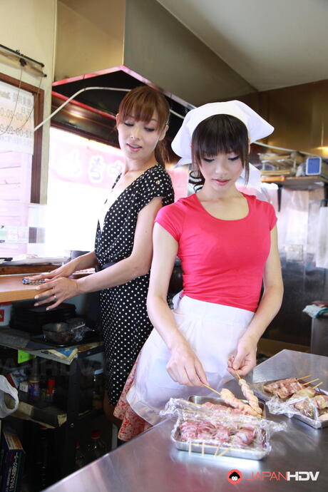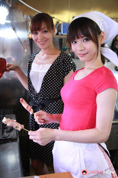 Japan HDV: Hot wives Akubi Yumemi and Hitomi Kanou seduce their man friend in the kitchen