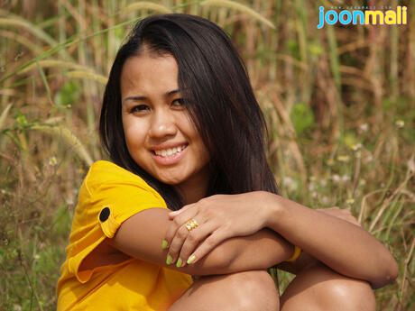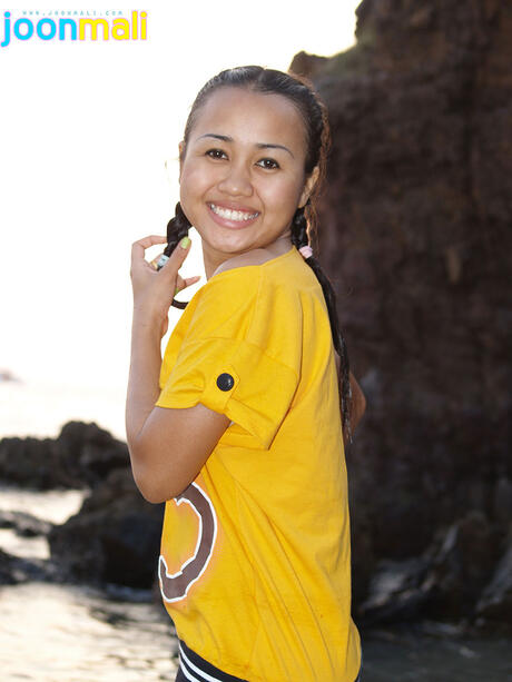 Joon Mali: Intriguing teen Joon Mali strips off her yellow jacket and white panties outdoors