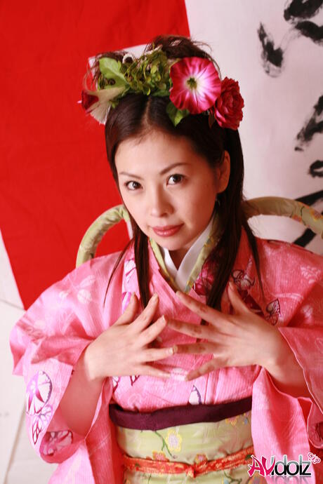 AV Idolz: Japanese babe Ran Monbu undresses and masturbates with a dildo on a table