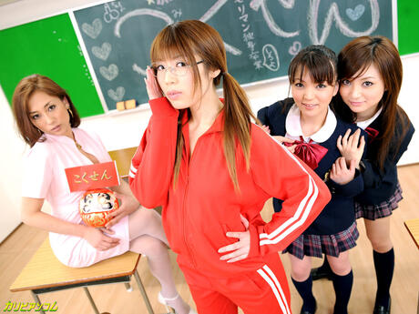 Caribbeancom: Japanese schoolgirls Arisa Aoyama and Yuu Uehara share a dick in a POV 3some