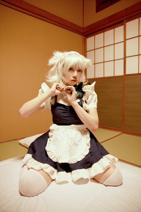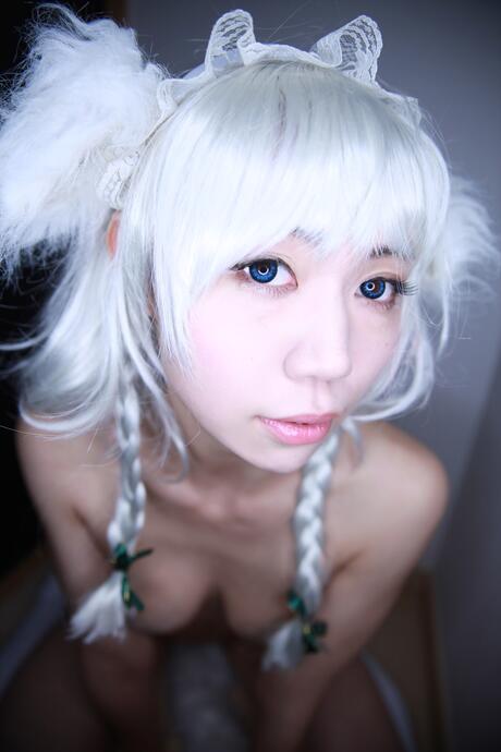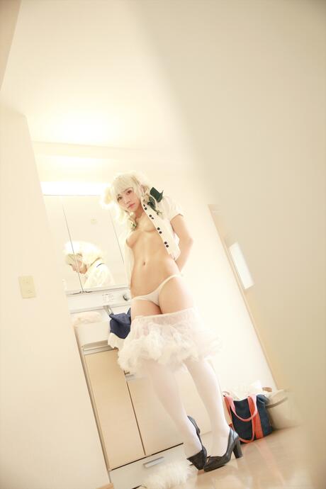 All Gravure: Maid Hozaki strips and masturbates in a solo bondage session