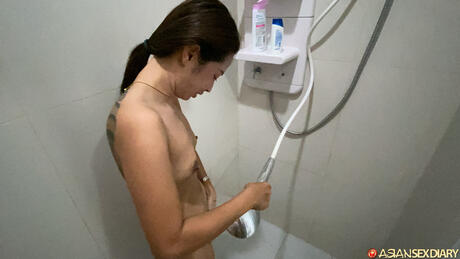 Asian Sex Diary: Nung B. shows her hot ass and tits in a hot bathroom strip