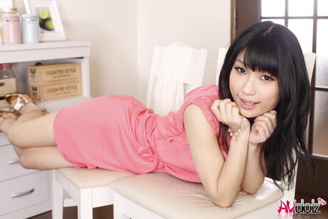 AV Idolz: Perfect Asian babe Runa Kobayashi strips off her pink dress and exhibits her curves