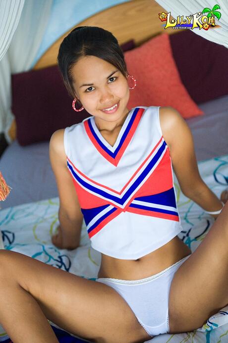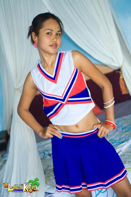 Lily Koh: Perfect Asian cheerleader Lily Koh strips and toys her horny pussy in a solo