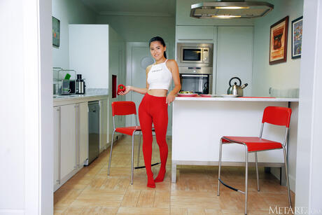 Metart: Perfect Asian Kimiko strips in the kitchen & masturbates with a dildo