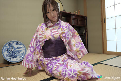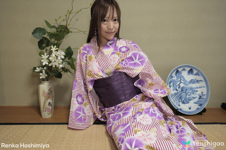 Tenshigao: Perfect Asian Renka Hoshimiya highlights her hot ass and spreads her pussy