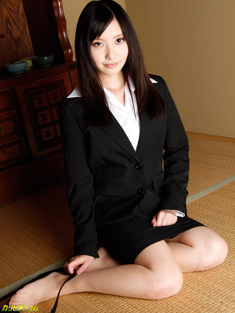 Caribbeancom: Perfect Asian secretary Riko Tanabe strips and toys her pussy in a solo