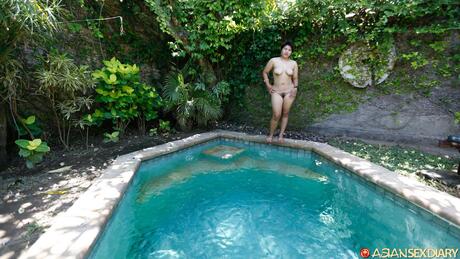 Asian Sex Diary: Perfect Asian Siska shows her sexy butt and tits in a solo outdoors by a waterfall