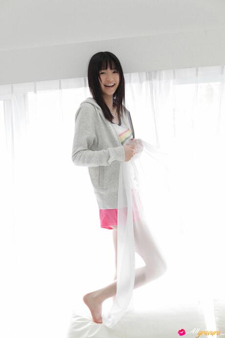 All Gravure: Perfect Asian teen Rina Aizawa strips off her school uniform and bares it all