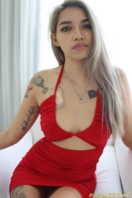 Asian Sex Diary: Perfect blonde Nori strips off her red dress and displays her hot butt in a solo