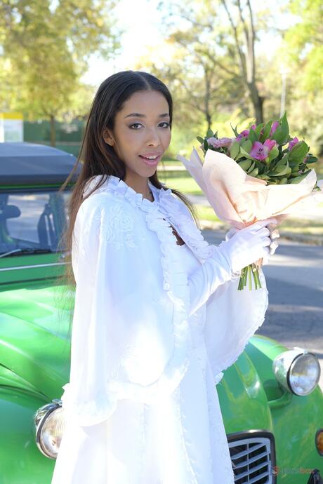 Porn World: Perfect bride Lia Lin strips and gets her pussy licked before fucking