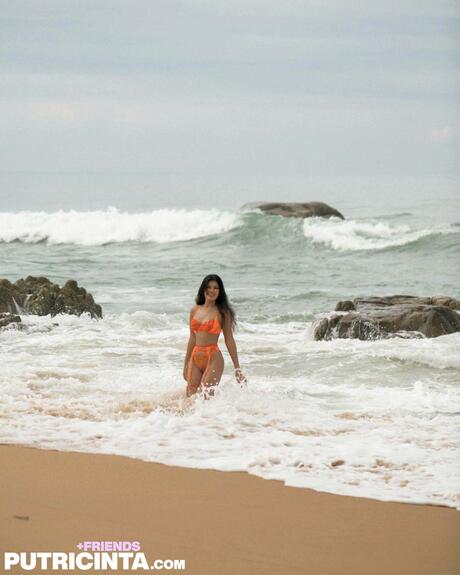 Putri Cinta: Perfect brunette Putri Cinta exposes her sexy butt and tits in a hot solo