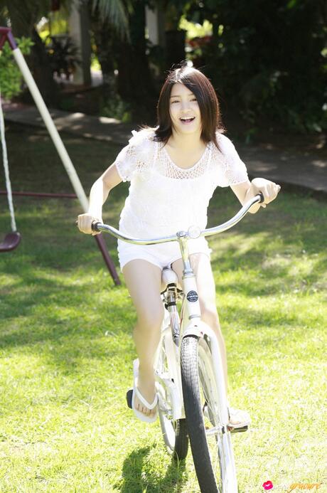 All Gravure: Perfect Japanese girl Umika Kawashima strips off her kimono and bikini on a bike
