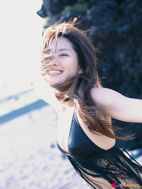 All Gravure: Perfect Japanese Haruna Yabuki highlights her big butt in a sexy bikini on the beach
