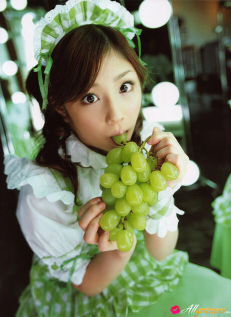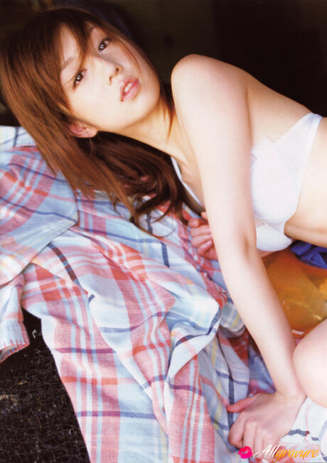 All Gravure: Perfect Japanese maid Yuko Ogura strips to her yellow panties & shows her ass