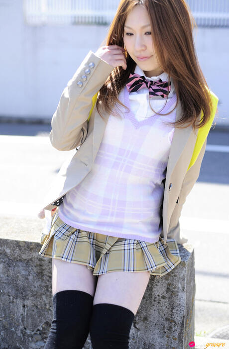 All Gravure: Perfect Japanese schoolgirl Miyu Kanzaki strips and flaunts her hot ass