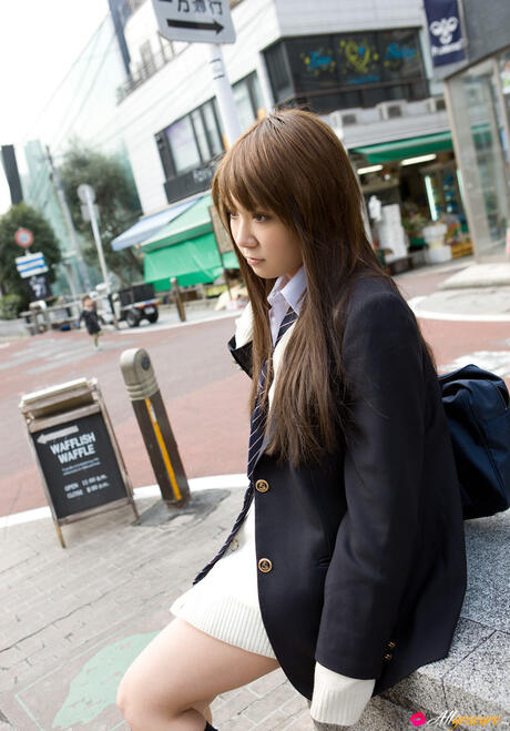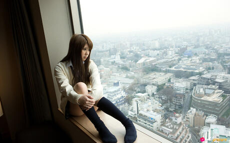 All Gravure: Perfect Japanese schoolgirl Riho strips and exhibits her big butt in a solo