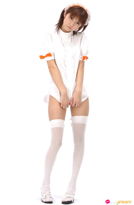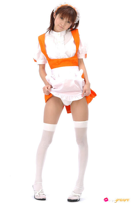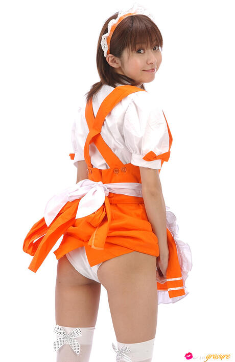 All Gravure: Petite Japanese maid Mika Orihara strips her uniform & panties to show her ass