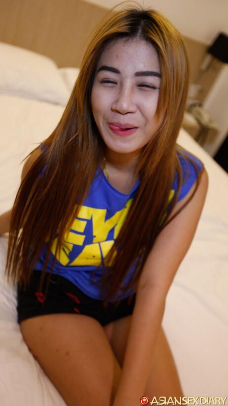 Asian Sex Diary: Petite teen Tan C strips and gets her hairy cunt licked before riding a dick