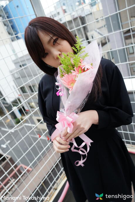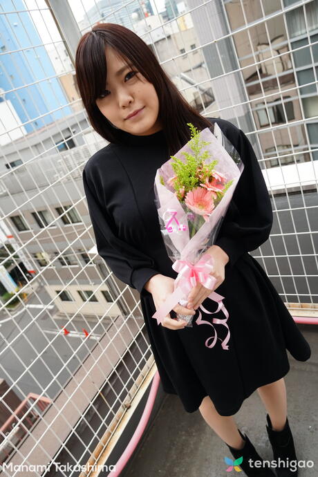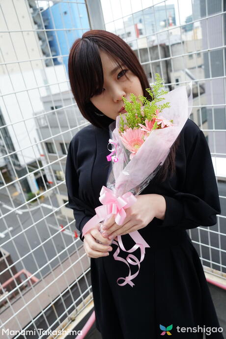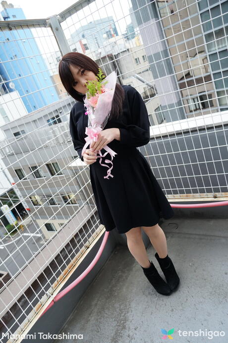 Tenshigao: Platinum Asian babe Manami Takashima strips and toys her pussy on the stairs