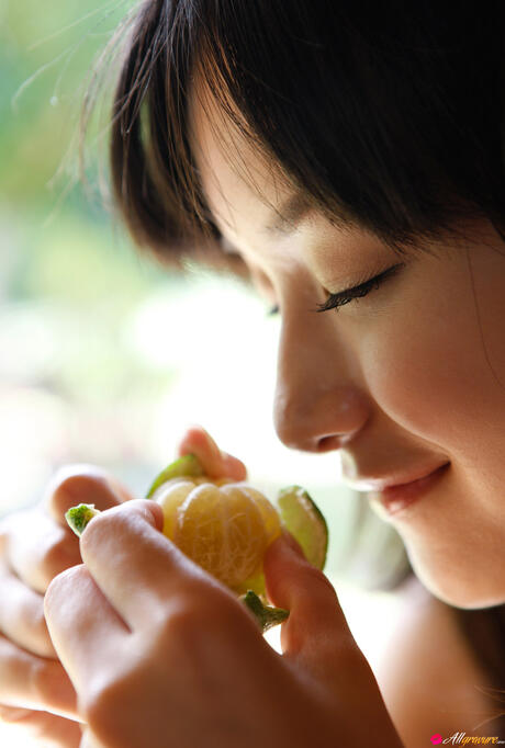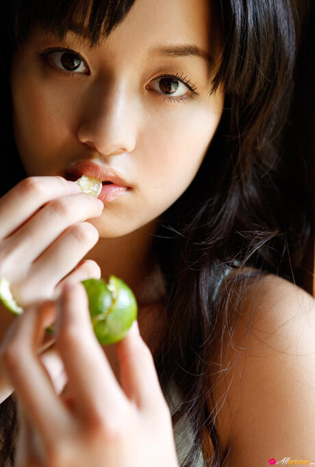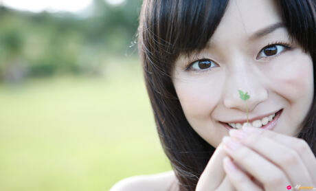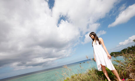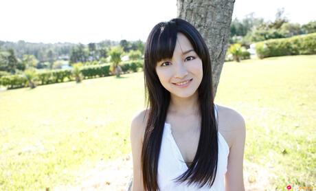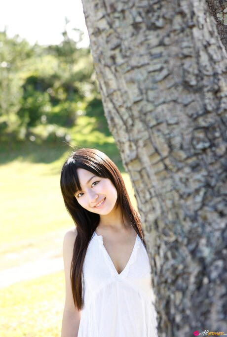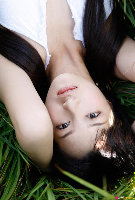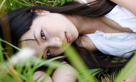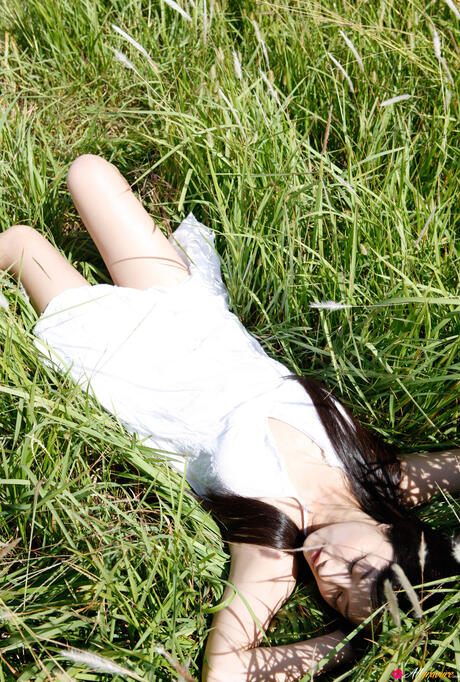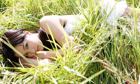 All Gravure: Platinum Asian babe Miyake Hitomi shows her sexy booty and poses in a field