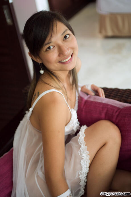 Dirty Pancake: Platinum Asian babe Pancake flaunts her big booty and toys her pussy in a solo
