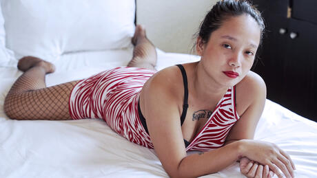 Trike Patrol: Platinum Asian babe Sandra Cruz strips and rubs wet pussy in a solo