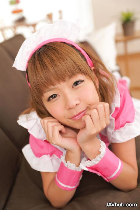 Jav Hub: Platinum Asian maid Fu Sazanami strips to her stockings & shows her sexy butt