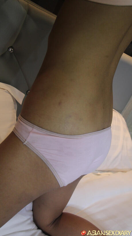 Asian Sex Diary: Platinum Asian maid Oam B. strips to her pantyhose and shows her big ass