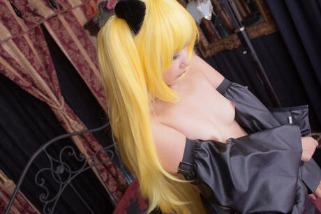 All Gravure: Platinum blonde Miyu unveils her small tits and spreads her pussy in a solo
